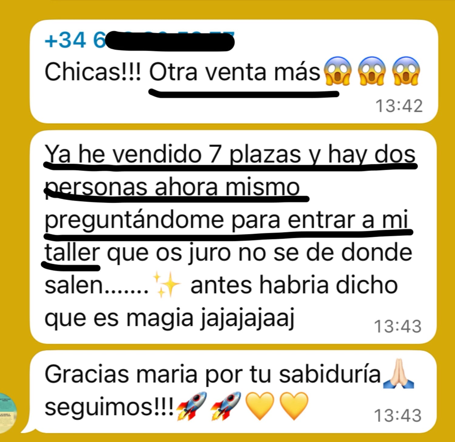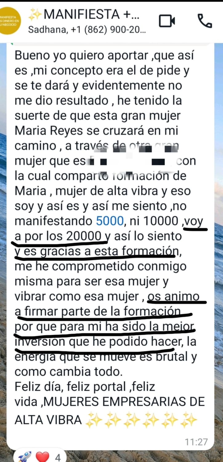 Opción 2: Inviertes en ti y te conviertes en la empresaria que puede sostener su negocio, vende y crece. En 3 meses, estás manifestando más dinero y tu vida se transforma.