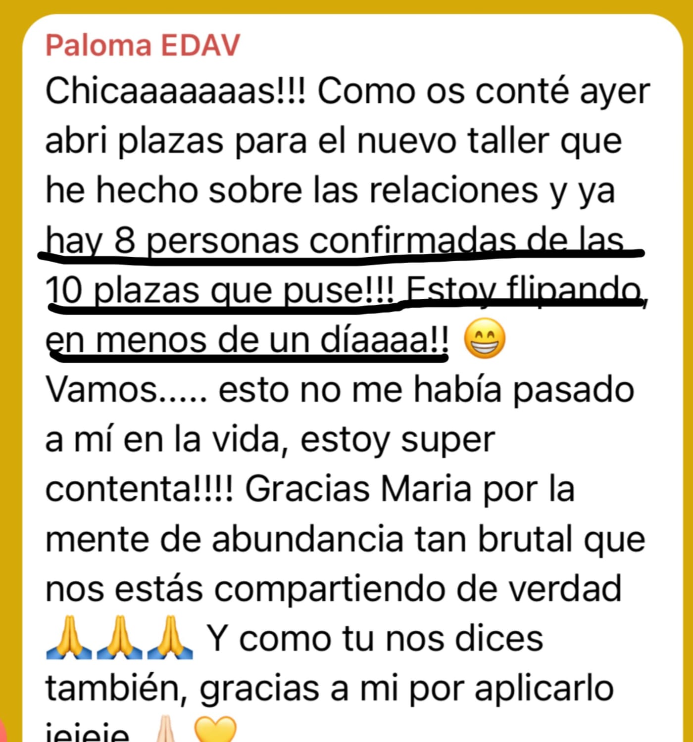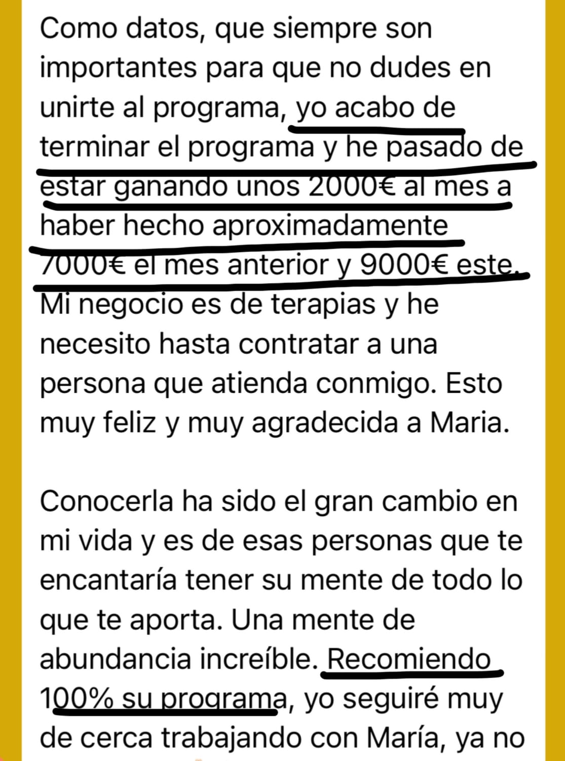 A día de hoy, he manifestado cientos de miles de euros y disfruto de la vida libre y abundante con la que antes soñaba gracias a haber trabajado mi mentalidad y seguridad como empresaria.